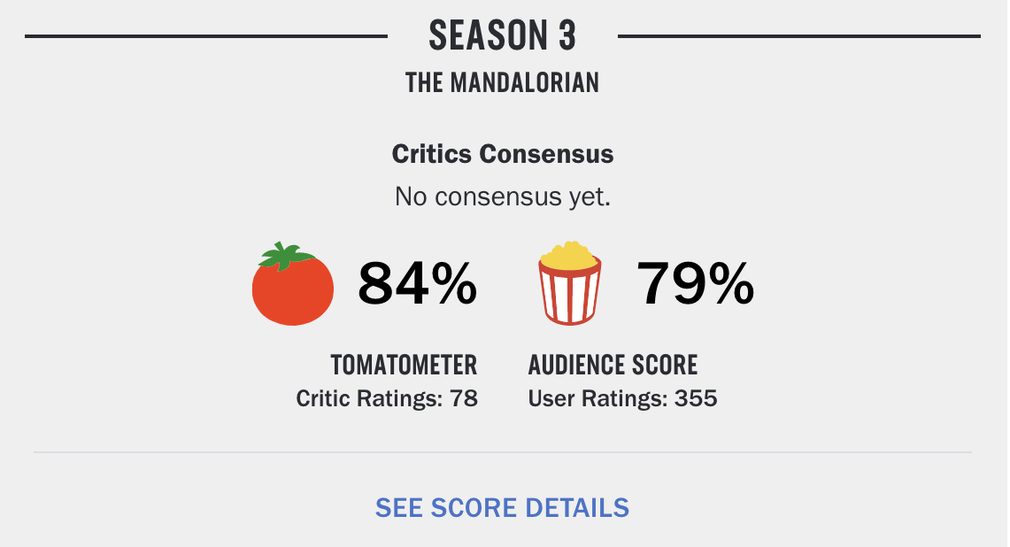 “The Mandalorian’s season 3 premiere was a return to simpler, safer Star Wars storytelling… In things like the episode’s overlong repetition-based jokes and action pieces that feel like pitches for future theme park attractions, you do get the sense that The Mandalorian’s going for quick, easy thrills and not necessarily telling the most engrossing tale at this point.”