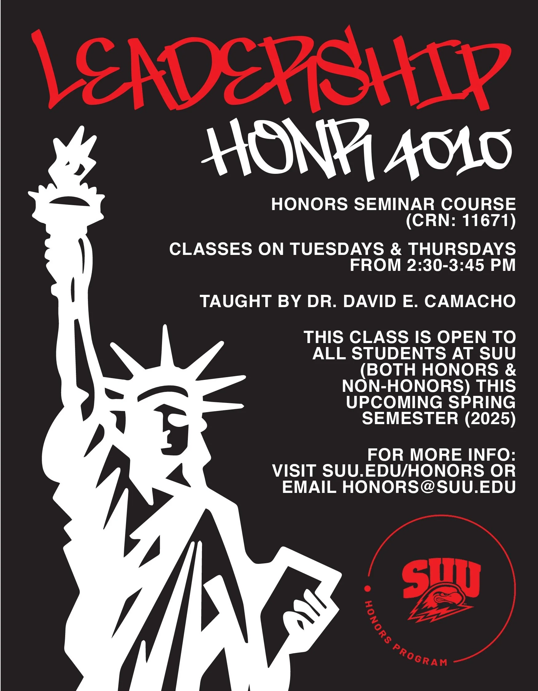 For my typography class, I had the opportunity to work on a marketing campaign for a class at SUU, designed in collaboration with the Honors Society president and led by Dr. David Camacho, a political scientist. The course focused on modern issues in politics and leadership, emphasizing the complexities of contemporary democracy.