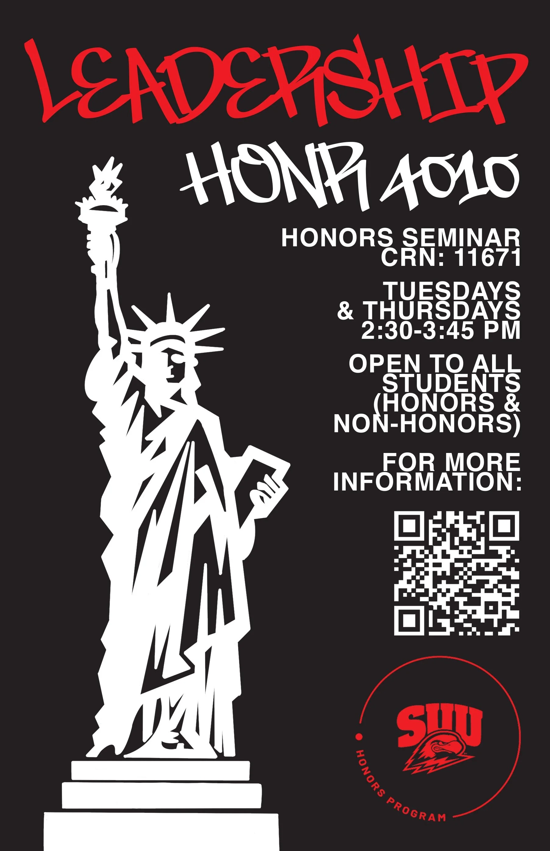I chose a striking color palette of black, white, and red to convey a sense of urgency and power. To reflect the rebellious spirit of democracy that Dr. Camacho wanted to highlight, I used a graffiti-inspired paint typeface. This stylistic choice emphasized the dynamic and often disruptive nature of political movements, aligning with the course's focus on modern political challenges and leadership strategies.